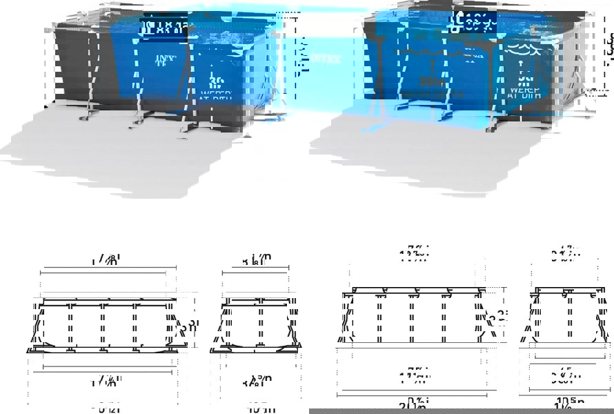 The puncture-resistant 3-layer materials ensure extra strength and durability of the pool. The sturdy steel frame guarantees a stable construction. The pool can be set up in a quick and easy way. It is also easy to maintain and store away when not in use. Get the rectangular pool home and enjoy a nice summer afternoon with your family.