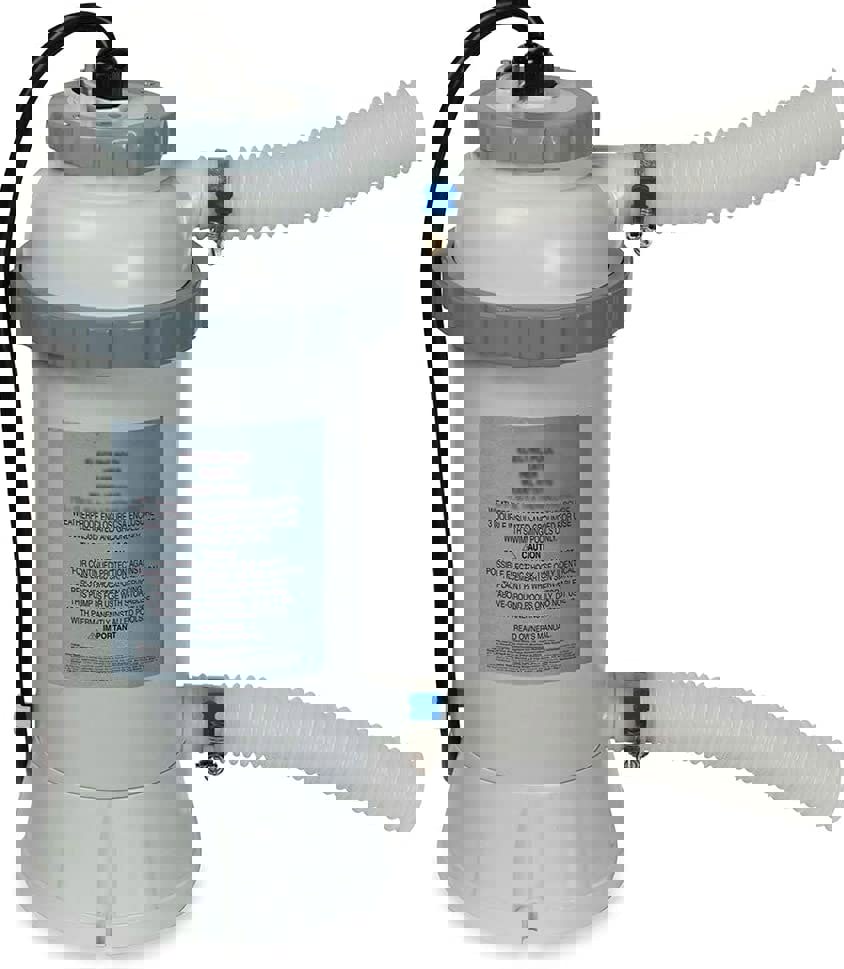 Overview Ideal for getting a little extra use out of your pool at the start and end of the summer season, this heater provides a bit of extra warmth for your pool water. It is designed to work with Intex Easy Set or Metal Frame pools with a diameter of 8ft to 12ft and easily connects in line with your pool cartridge filter pump. Although it may fit most 15ft Intex pools, use on these is not recommended.
