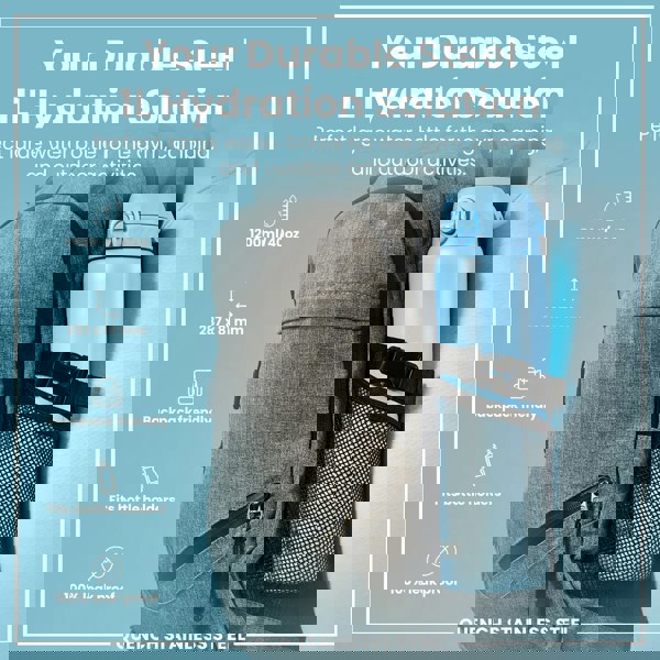 The perfect large water bottle for fitness, gym, camping and outdoors. This bottle fits wider or adjustable cup holders and external adult rucksack mesh pockets.
