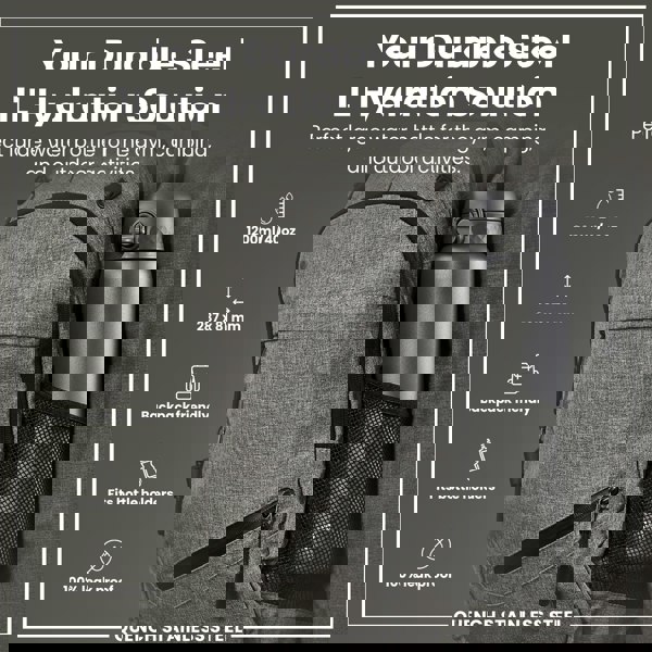 The perfect large water bottle for fitness, gym, camping and outdoors. This bottle fits wider or adjustable cup holders and external adult rucksack mesh pockets.