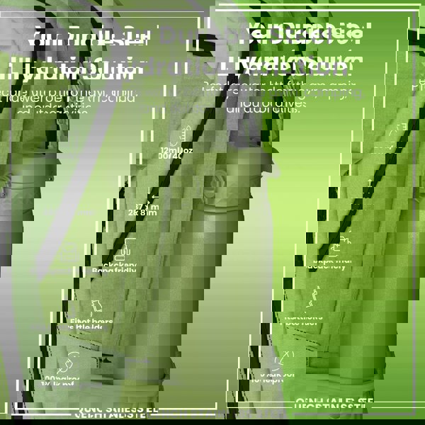100% leak proof 1200ml / 40oz lightweight stainless steel green water bottle with a smooth flow for spill-free hydration and hygienic full-flip top cover for one handed use on-the-go.