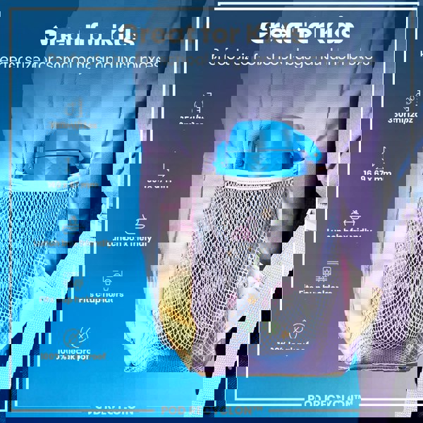 Small enough as a kids water bottle for their school lunch boxes or for smaller bags about town. The width of a soda can, it fits perfectly into all car cup holders and pockets on all backpacks.
