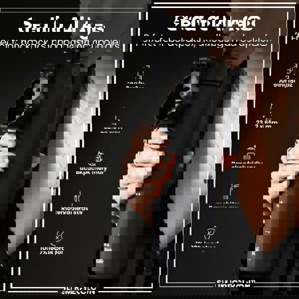 Small enough as a kids water bottle for their school lunch boxes or for smaller bags about town. The width of a soda can, it fits perfectly into all car cup holders and pockets on all backpacks.