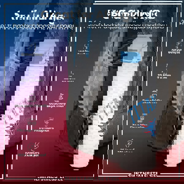 A water bottle, fits in a backpack, is shown in a side pocket of a backpack. 600ml/20oz, 232 x 65 mm, backpack friendly, fits cup holders, 100% leak proof. Great for all ages. Slim stainless steel.