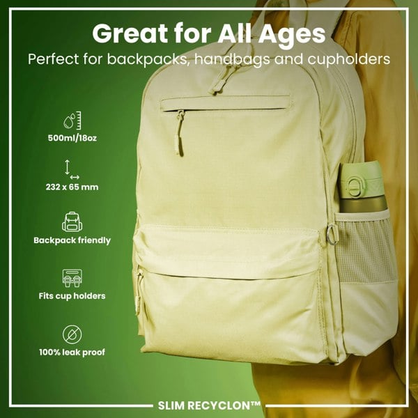 ION8 Leak Proof Slim Water Bottle, Recyclon, Green, 500ml (18oz)