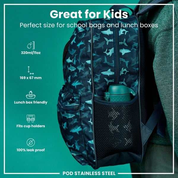 The perfect replacement for single use disposable cups. Small enough as a kids water bottle for their school lunch boxes or for smaller bags about town. The width of a soda can, it fits perfectly into all car cup holders and pockets on all backpacks.