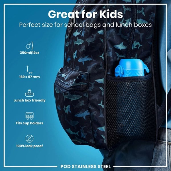 The perfect replacement for single use disposable cups. Small enough as a kids water bottle for their school lunch boxes or for smaller bags about town. The width of a soda can, it fits perfectly into all car cup holders and pockets on all backpacks.