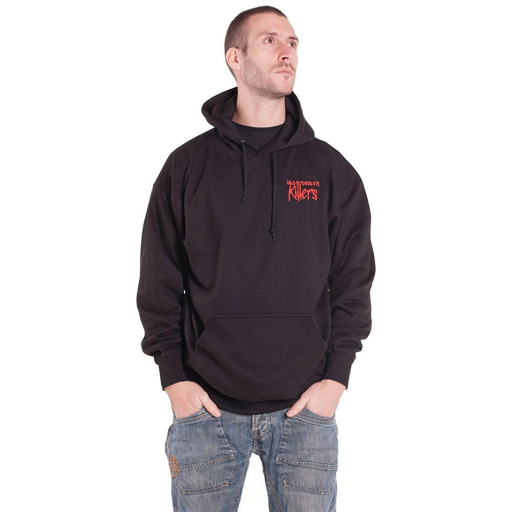 An official licensed Iron Maiden Unisex Pullover Hoodie featuring the 'Killers Eddie' design motif. This high quality Pullover Hoodie is available in a black colourway. High quality cotton Unisex Pullover Hoodie featuring drawstring hood, kangaroo style pouch pockets. With front and back printing. Comes in a wide range of sizes from Small through XX-Large, subject to availability.