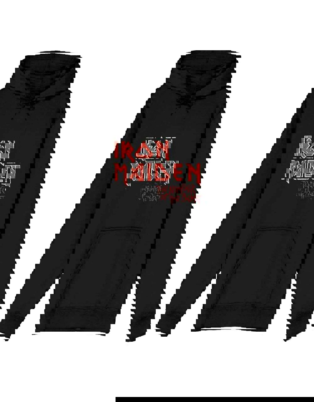 An official licensed Iron Maiden Unisex Pullover Hoodie featuring the 'Number of the Beast Vintage Logo Faded Edge Album' design motif. This high quality Pullover Hoodie is available in a black colourway. Great quality classic style cotton pullover hooded top with pouch pockets and hood. Features front and back printing. The Number of the Beast is Iron Maiden's third studio album, released on 22 March 1982. The album was their first to feature Bruce Dickinson. 2022 celebrates the 40th anniversary of this iconic album. Comes in a wide range of sizes from Small through XX-Large, subject to availability.