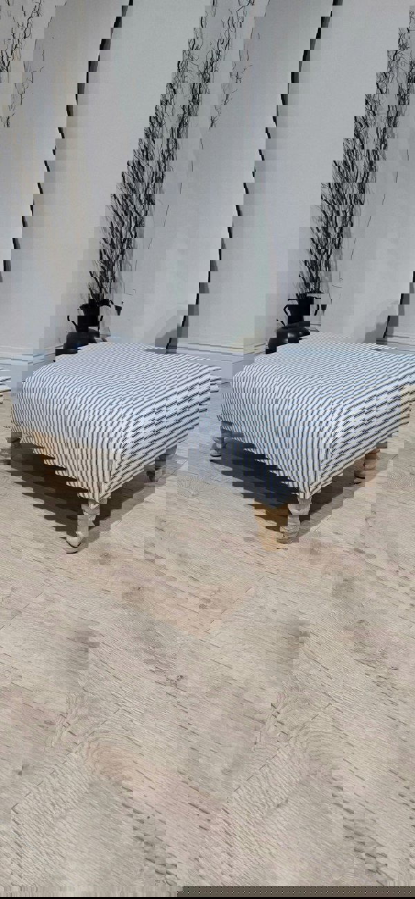Blue stripe footstool non storage. Handmade with a selection of leg options.