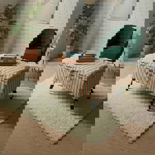Upholstered in JF Linen Ticking Fabric Red, this ottoman storage bench brings a classic striped look to everyday living. Designed to work across the home, it offers a comfortable place to sit or rest your feet while keeping clutter neatly out of sight in a hidden storage compartment.