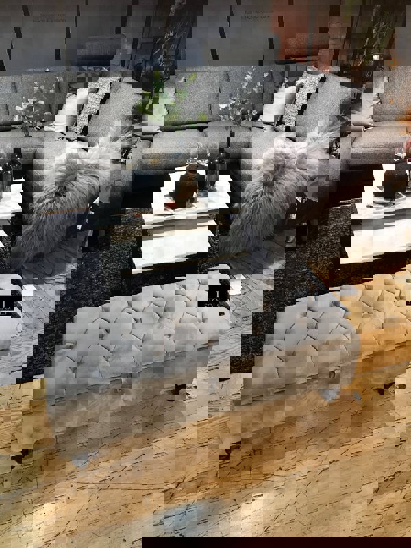 Designed to bring tailored style and practical storage to your living space, the ISTOOLS Luxury Velvet Storage Ottoman Bench combines a tufted top with a deep storage box. Upholstered in plush velvet in a silver finish, it’s detailed with clean trim for a refined look that works across a range of décor styles.