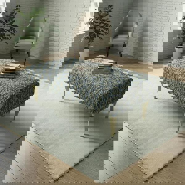 Elevate your living space with the Sleek Profile Upholstered Bench – a striking footstool designed to blend artistry and function seamlessly. Crafted with a fixed, seamless top, this piece serves as both a comfortable seating option and a statement accessory, making it a versatile addition to any contemporary interior. Its vibrant, abstract art-inspired fabric and elegant wooden legs bring sophistication and a painterly charm to your home.