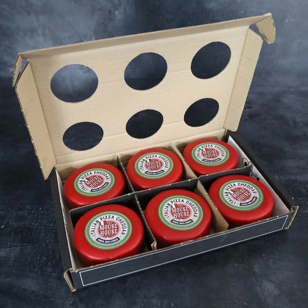 Six 200g cheddar truckles infused with flavours of tomato, basil and garlic.