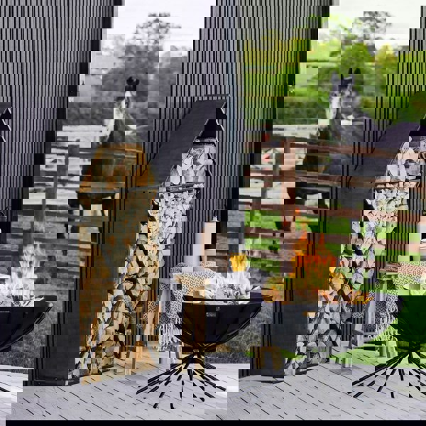 The Ivyline House log storage sculpture in natural black provides a modern twist to your outdoor area. Made of premium quality metal and with the added benefit of a protective black coating, the House metal log store is hardened against frost and well-suited to life outdoors. Different sized compartments make it ideal for arranging logs and kindling in a variety of shapes, and its angular lines create an excellent aesthetic when it’s attached to a wall.