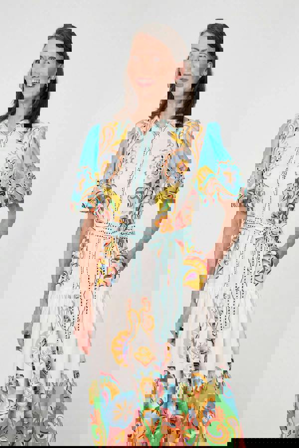 Ideal for occasion dressing, the Izabel London Abstract Border Tie Waist Midi Dress brings a polished shirt-dress silhouette to your wardrobe. A classic collar and button fastening keep the look clean and structured, while the tie waist allows you to shape the fit through the middle. Finished with 1/2 puff sleeves and a midi-length hem, it offers a considered balance of detail and coverage.