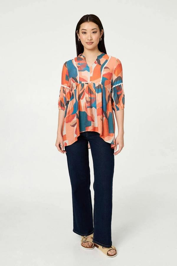 Easy to wear for everyday plans, the Izabel London Abstract Lace Trim Relaxed Blouse brings a relaxed silhouette with a ruched shape and lace-trim detailing. A V-neckline and half sleeves keep the look clean and laid-back, while the hip-length hem offers straightforward coverage for casual dressing or work.