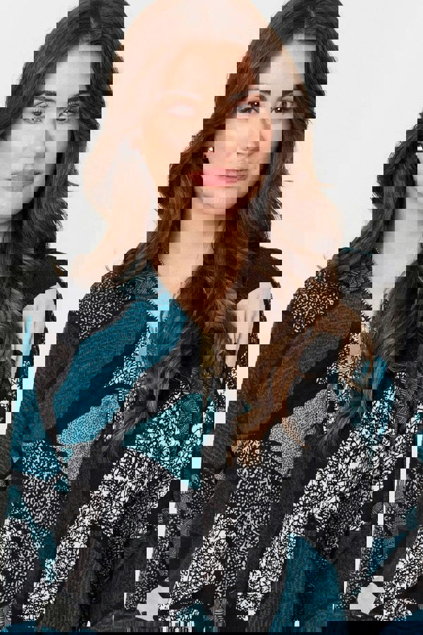 This elegant long sleeve top has a v-neck with a 1/2 zip on the front, as well as long sleeves and a relaxed fit. The thigh length hem has a curved shape that will lay beautifully over trousers, jeans or a skirt. Style with fitted trousers and jewellery for a more formal look.