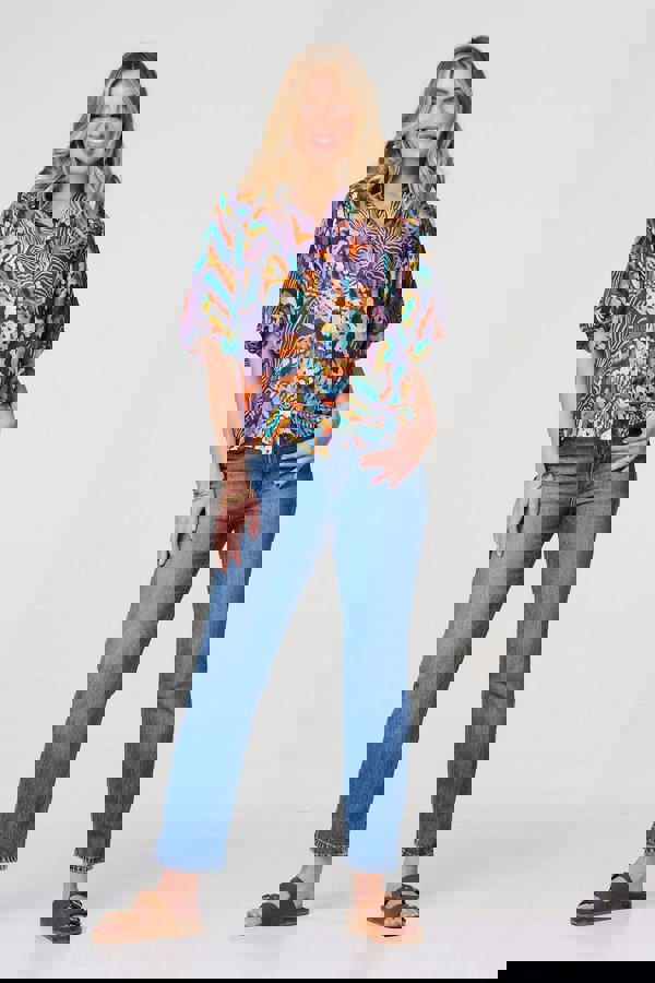 Add some vibrant colours to your wardrobe with this bright shirt! It has buttons, a collar and eye-catching puff 1/2 sleeves that are sure to make your outfit stand out - whether you're at work or out with friends. Pair with jeans and trainers to complete the retro look.