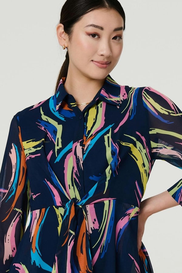 This midi dress is sure to become a new favourite for special occasions, days at the office or evenings out with friends. It has a semi sheer layer with 3/4 sleeves and an elegant tie front. The shirt dress design includes buttons and a collar - but it also has handy pockets! Dress it down with white trainers, or tap into a smart dress code with heels and a clutch bag.