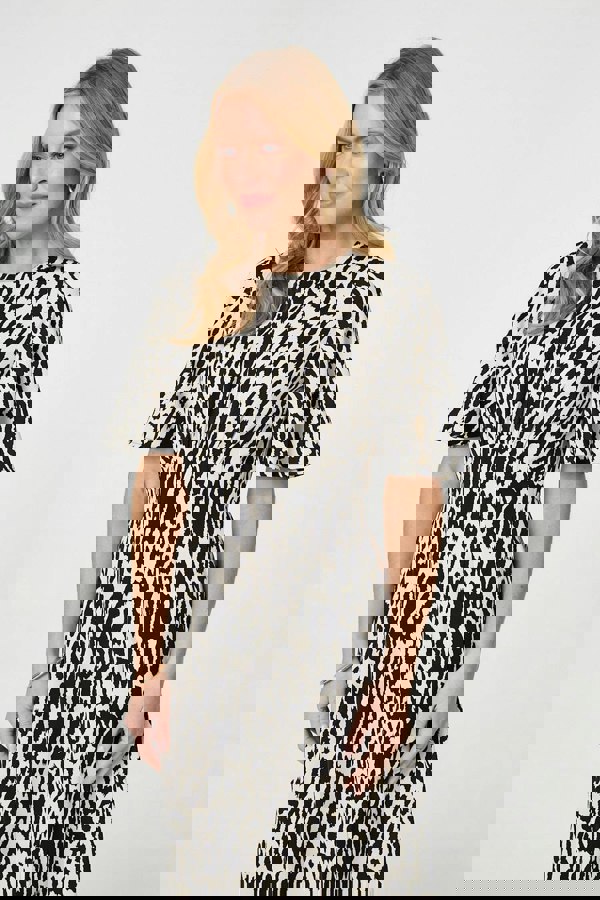 For an effortless look at work or a smart dress-code occasion, this dress is perfect. It has comfortable flared 1/2 sleeves and will flatter your figure thanks to a shirred detail underneath the bust and a classic round neck. Pair the midi length hem with your favourite heels.
