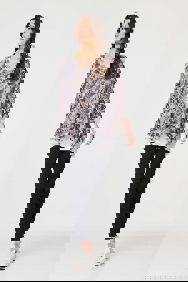 Get double the style with this double layered tunic top. The relaxed fit means it looks both casual and stylish layered over trousers or leggings. The top layer includes button back details and a hanky hem. Complete with a scoop neck and 3/4 sleeves, this tunic is a must have for your wardrobe.