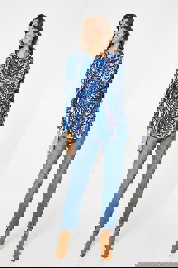 You can't go wrong with a relaxed long sleeve top. This one has a comfortable fit and a round neck, with a slightly longer curved hem that reaches thigh length. Complete the look with jeans or a relaxed pair of trousers.