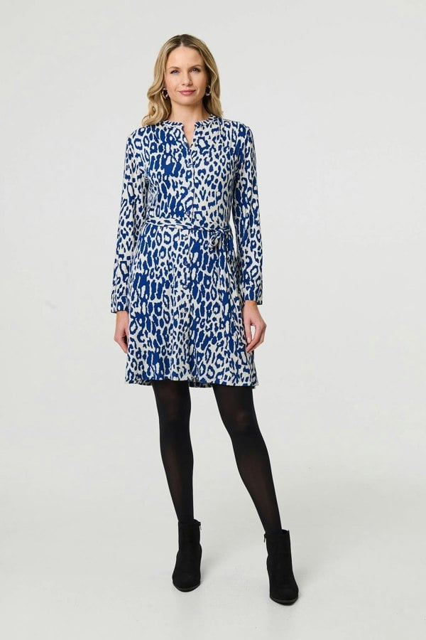 Dress for work or any smart event with this elegant dress. It's made from a breathable viscose blend and has long sleeves, a high neck and button details down the front. Find the perfect fit with an adjustable tie waist and layer the short length hem over tights on an autumnal day out.