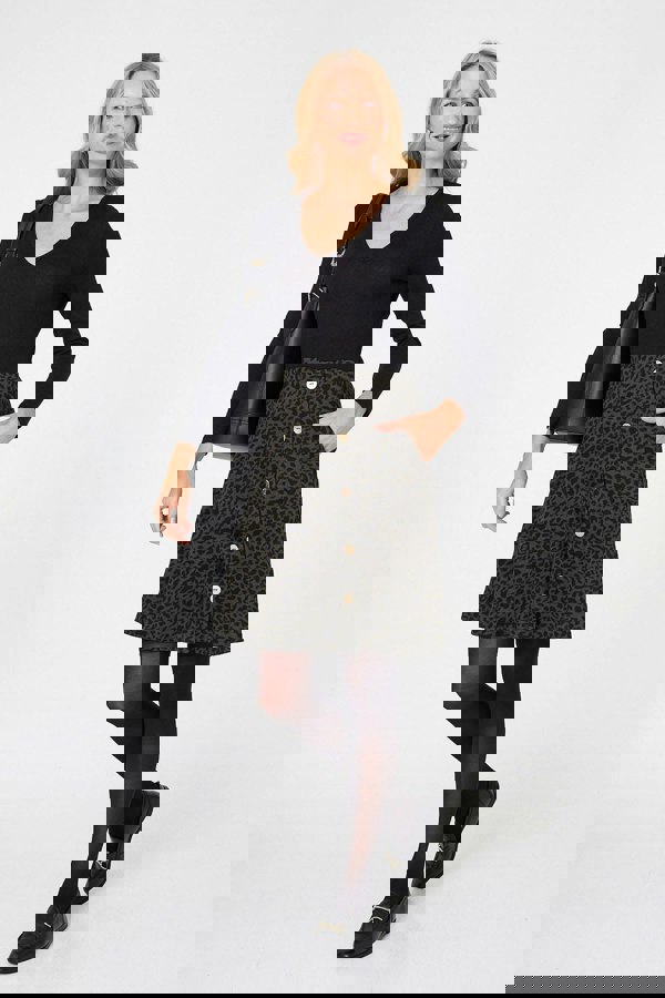 This flattering skater dress features a short skirt and a slim long sleeve top. It will look great on all figures thanks to a flattering v-neck, a flared shape and button details as an elegant finishing touch. It pairs perfectly with boots and tights.