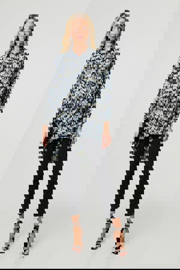 Get a laid-back look with this longline shirt. It's made from a floaty semi sheer fabric and has long sleeves, buttons and a collar. The high low hem reaches thigh length so you can wear it over jeans or leggings with heels for a special occasion.