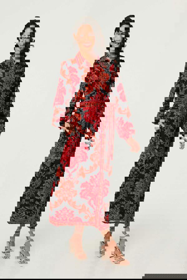 This elegant maxi dress has an adjustable tie waist for the perfect fit, as well as a collar, buttons and an a-line shape. Wear it with your favourite heels for a smart dress code occasion.