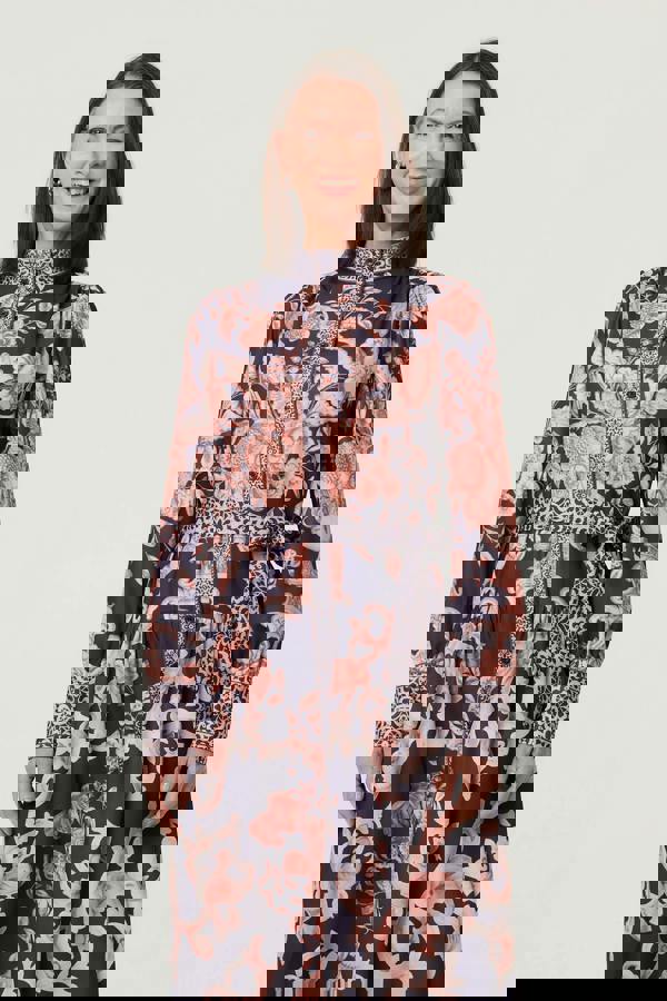 Get a formal look in this beautiful maxi shirt dress. It has long sleeves, a high neck and buttons. Get the perfect fit with the tie waist and style this dress with heels on your next evening out.