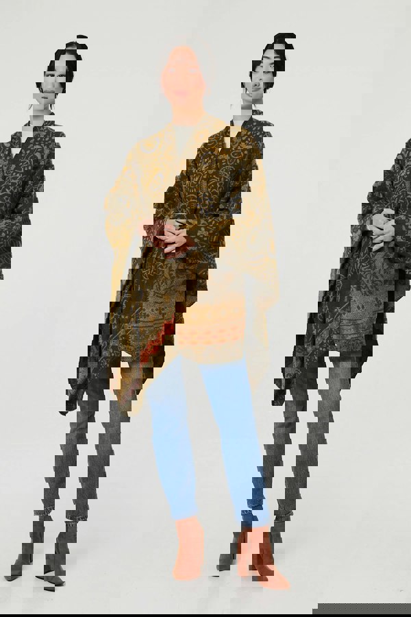 Add an extra layer to your look with this cosy poncho. It has an oversized fit, complete with long sleeves and a v-neck front. The longline hanky hem gives it a relaxed, oversized look.