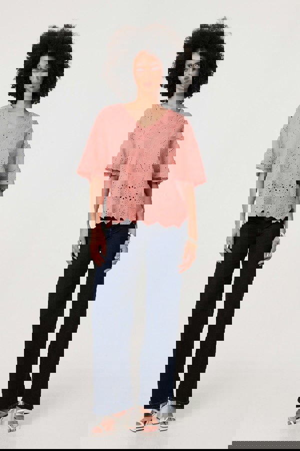 You can never have too many Broderie Anglaise tops! This one is perfect for both smart and casual outfits, thanks to a flattering v-neck and a relaxed fit. It has angel 1/2 sleeves with a frilled hem, and looks beautiful layered over jeans or fitted trousers. Plus it's made from 100% cotton for a smooth, soft feel against the skin.