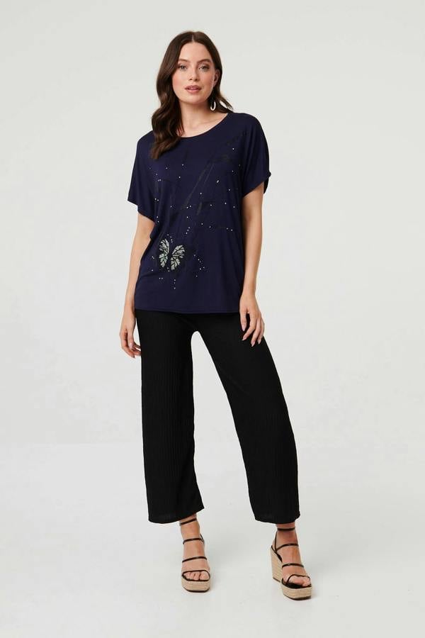 Keep it casual with this elegant relaxed top. It has cute embellished details on the front, along with short sleeves and a thigh length hem. Wear it with jeans and trainers for a laid-back look.
