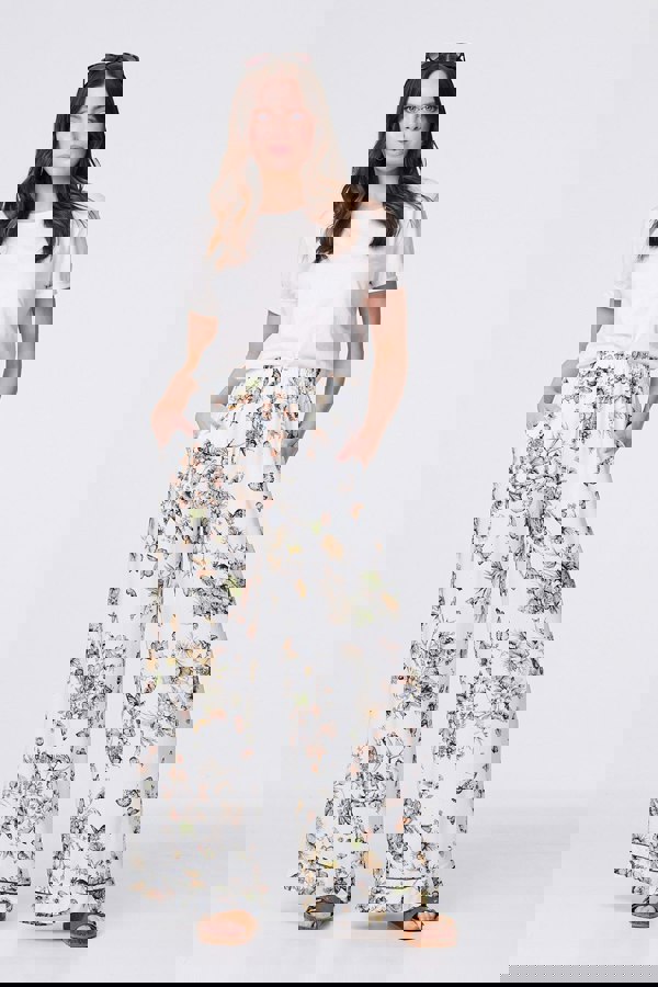 Add a bold botanical print to your closet with this butterfly printed trouser. With a high rise, an elasticated waistband, pockets and a wide full length leg featuring a contrast piped detail cuff. Style with the co-ordinated butterfly print shirt for an instant outfit or pair with a simple white t-shirt and sandals for a versatile everyday look.