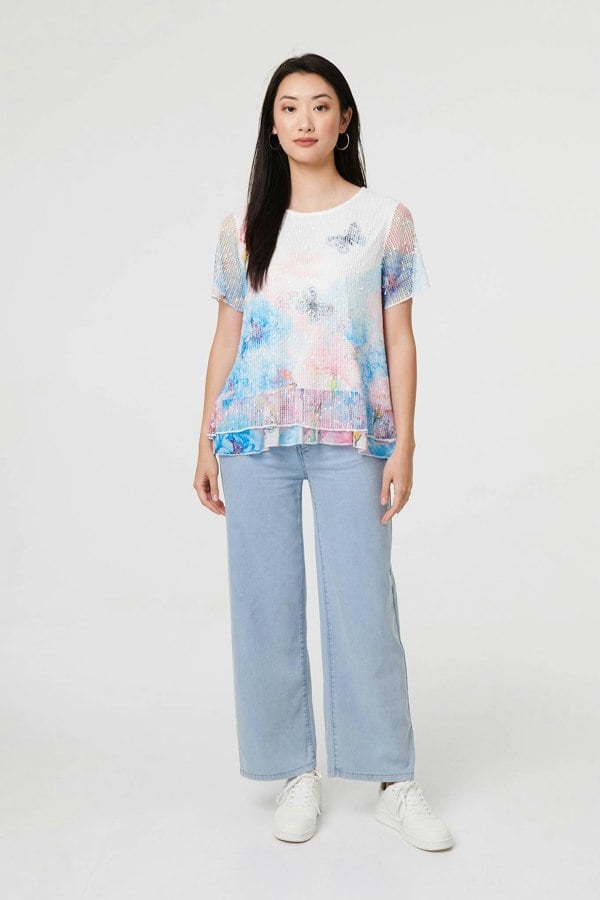 This beautiful top will suit smart or formal dress codes, whether you pair it with simple trousers or a skirt. It has a mesh layer, semi sheer sleeves and a round neck. The layered hem adds a ruffled texture to your look as a beautiful finishing touch.