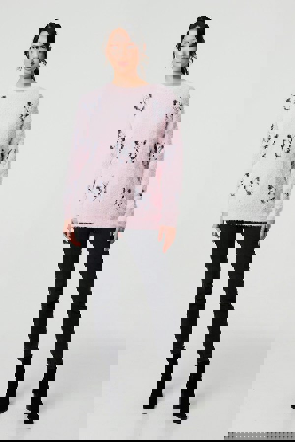 You'll feel as cosy as you look in this soft jumper. It's made from a textured knit fabric that will feel great against your skin - complete with a butterfly print. It also has long sleeves, drop shoulders and a relaxed fit. The thigh length hem looks especially stylish layered over jeans with boots.