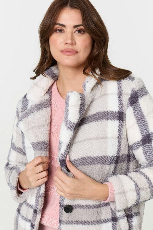 Cosy up this season in this relaxed teddy jacket. It has a boxy fit with a thigh length hem, buttons and a wide lapel collar. It even has pockets that will keep your hands warm on a chilly day. Throw it on over any look - formal, professional and casual outfits will all look sleek with this jacket.