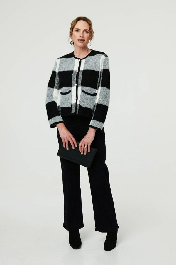 This elegant cardigan has long sleeves, buttons down the front and stylish pocket details. Wear it with smart trousers or over a dress for an office-ready formal look that's perfect for special occasion. It also has a round neck and a cropped hem.
