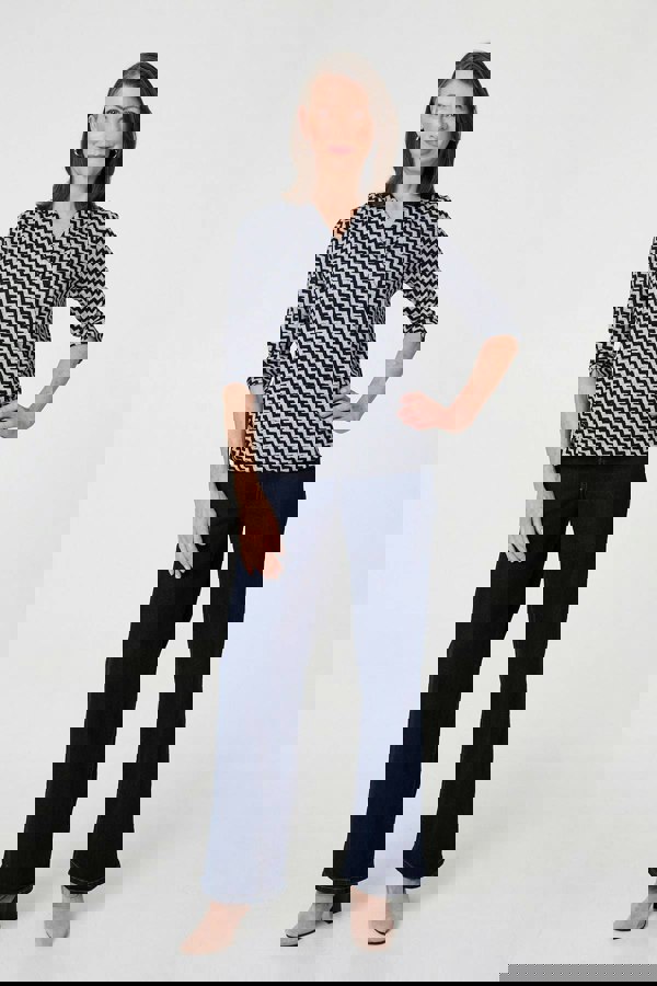 This simple-yet-stylish top is a must-have for your workwear wardrobe. It has a slim hip length fit, with a wrap front shape and a classic v-neck. It features 3/4 sleeves and looks elegant paired with smart trousers or jeans.