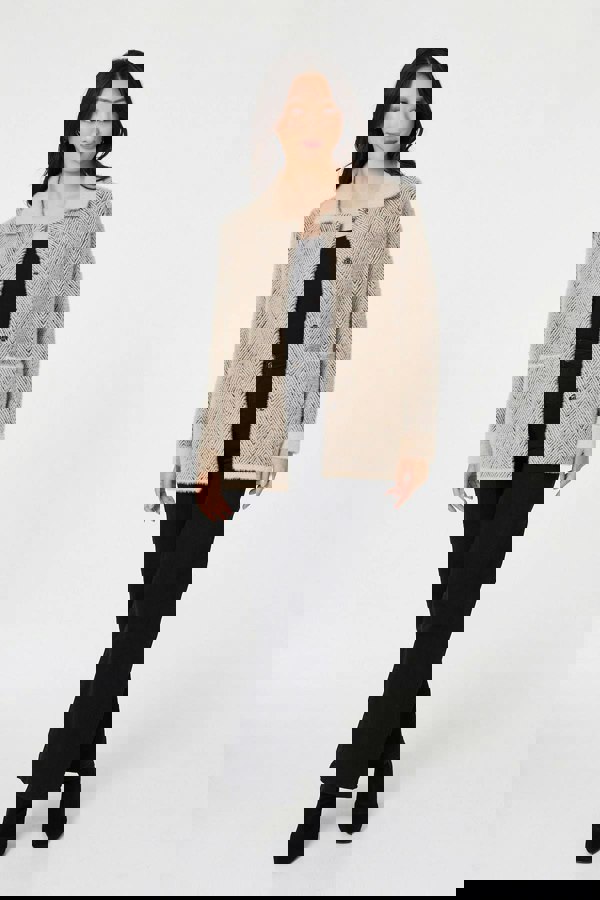 Stay cosy and on-trend in this flattering jacket. It has soft faux fur trims around the collar and the sleeves, as well as pockets on the front to keep your hands nice and toasty. It has a boxy shape and a hip length hem that layers perfectly over any casual or formal outfit.