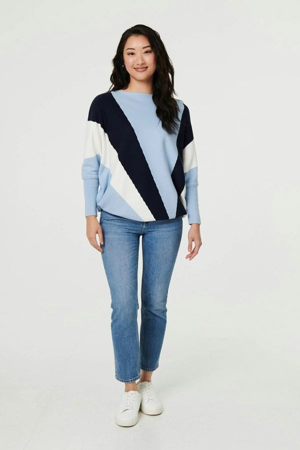 This eye-catching jumper has a relaxed fit, slouchy batwing sleeves and a hip length hem. Wear it with matching casual jeans for a laid-back weekend outfit.