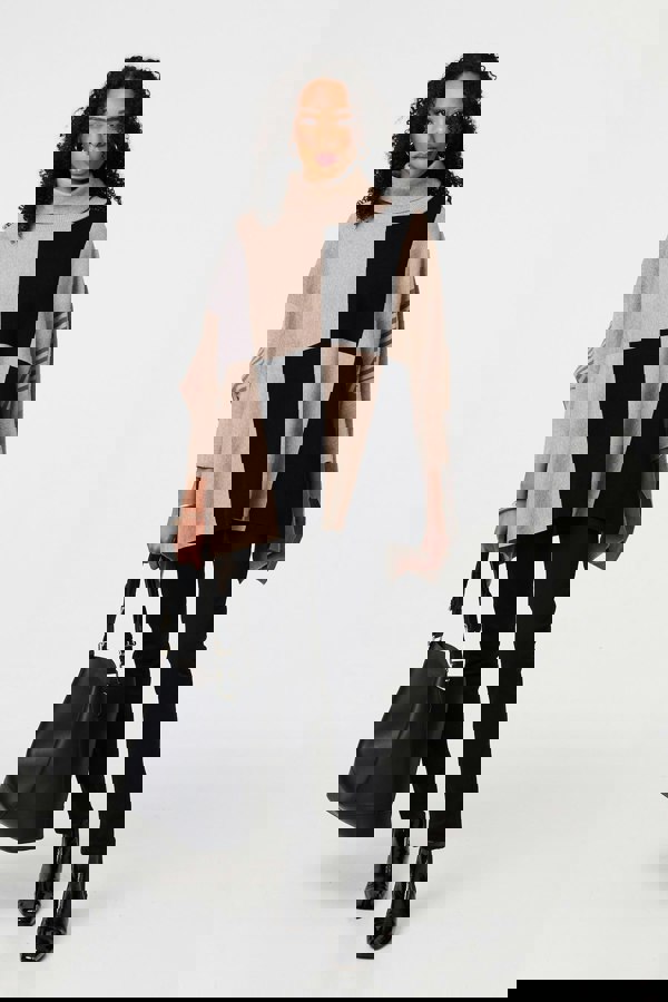 This soft viscose blend poncho features a warming roll neck and an oversized fit - perfect for days when you need some extra warmth. It has long batwing sleeves, drop shoulders and a thigh length hem. Pair it with jeans and boots and you can't go wrong!
