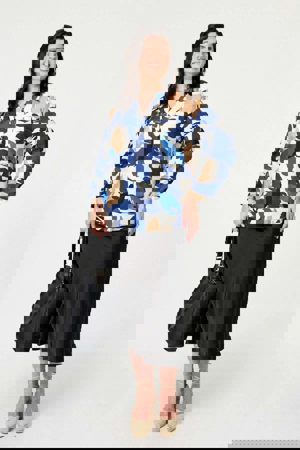 Dress for work in style wearing this comfortable blouse. It has long turn-up sleeves, a relaxed fit and a flattering button-front v-neck neckline. Tuck it into a midi skirt, or leave it loose over blue jeans for a relaxed finish.
