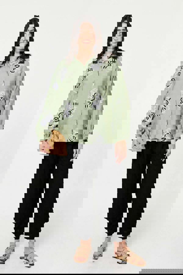 This relaxed shirt is designed for a comfortable fit on your curves. It features long sleeves with drop shoulders, a collar and front buttons. Wear it with embroidered trousers to match, or style with jeans for casual elegance.