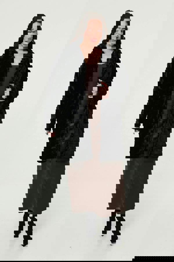 Add a luxe faux fur coat to your new season closet with this open front style. With a classic collar, long sleeves, pockets and a thigh length hem. Layer over a silky cami top, faux leather trousers and heels for a chic girls night look or layer over your favourite jumper, denim and trainers for an elevated everyday outfit.