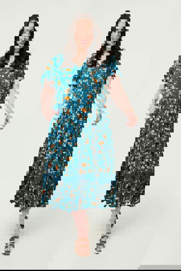 You're sure to look elegant in this stylish dress. It has a v-neck, short sleeves and a midi length hem for an effortlessly stylish look. The waistband will flatter your figure thanks to a pleated panel and intricate lace trim. Just complete the look with heels for formal plans, or sandals on a casual day out.