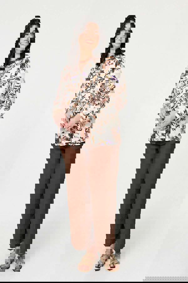 This simple-yet-stylish blouse will become your new wardrobe favourite. It has a relaxed fit, turn-up 3/4 sleeves that can be adjusted for a short sleeve look, and a flattering v-neck. This blouse is finished with front buttons and can be styled with blue jeans for a casual look, or with fitted trousers on a special occasion.