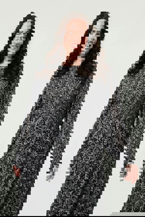 For a special occasion, all you need is this beautiful midi dress - and your most comfortable heels, of course. It has long puff sleeves and a shirred bodice, with a semi sheer layered skirt. The flattering tiers will give your figure a classic silhouette that's perfect for weddings, parties, dates and more.